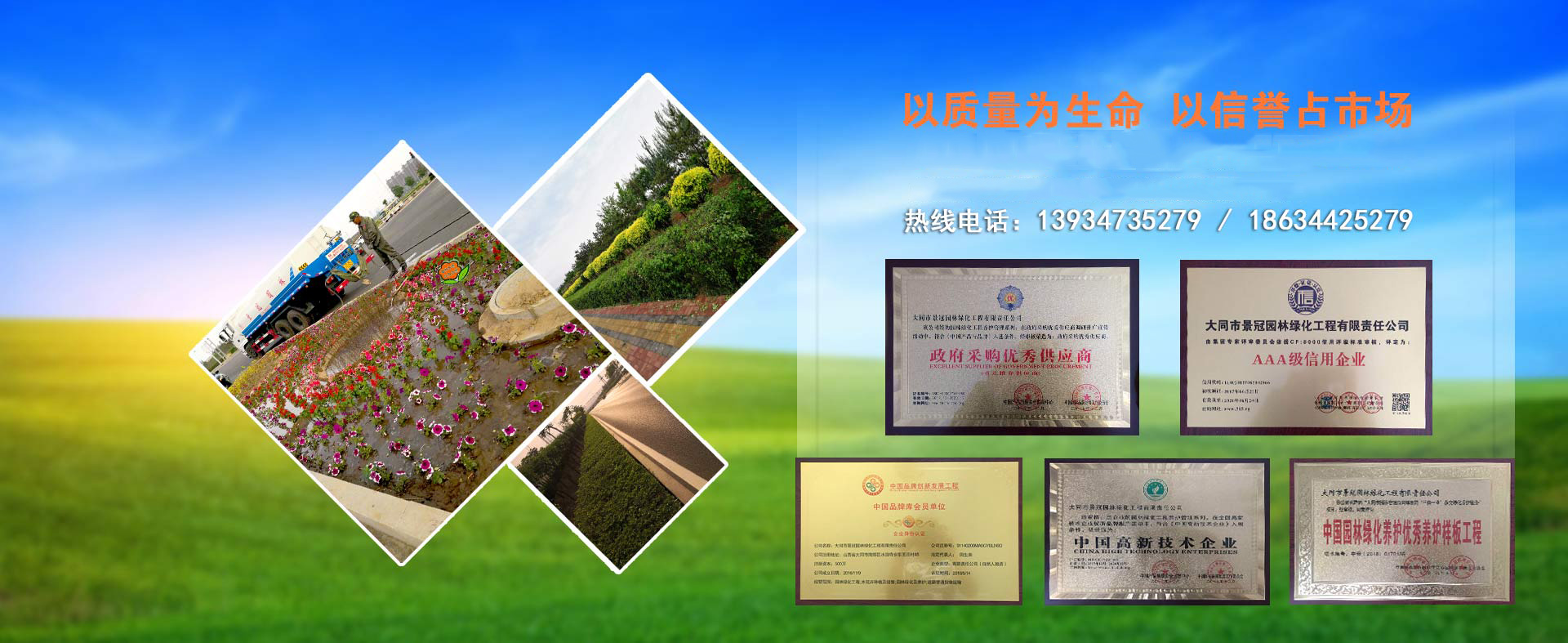 大同市景冠園林綠化工程有限責(zé)任公司是一家根植于設(shè)計(jì)、施工、植保養(yǎng)護(hù)、苗木花卉生產(chǎn)于一體的園林景觀企業(yè)。公司“以質(zhì)量為生命”、“以信譽(yù)求發(fā)展”這是公司一貫的經(jīng)營(yíng)宗旨。并以創(chuàng)新,誠信,綠色,共享的發(fā)展理念,創(chuàng)造良好的企業(yè)環(huán)境。堅(jiān)持愛綠,護(hù)綠,保綠的方針為城市增添一份綠色,用綠色擔(dān)當(dāng)生態(tài)建設(shè)使命是我們共同追求的價(jià)值和企業(yè)目標(biāo)。以全新的管理模式,完善的技術(shù),周到的服務(wù),卓越的品質(zhì)為生存根本。幾年來我們致力于園林景觀植物領(lǐng)域的研究,在城市綜合體景觀,校園園林景觀,道路景觀,生態(tài)農(nóng)業(yè)景觀,美麗鄉(xiāng)村景觀,濕地景觀等多個(gè)領(lǐng)域參與規(guī)劃設(shè)計(jì)施工。不斷加大科技投入力度,加強(qiáng)人才的儲(chǔ)備,網(wǎng)絡(luò)技術(shù)的培訓(xùn),提升自主創(chuàng)新能力,不斷完善企業(yè)文化,用超前的技術(shù)制定出一套完整的園林植保技術(shù)管理方案。我們堅(jiān)持以擔(dān)當(dāng)為使命,用戶至上,服務(wù)至上,秉持初衷,不忘初心,實(shí)實(shí)在在,心無旁騖做好植保養(yǎng)護(hù)主業(yè),打造屬于自己的企業(yè)品牌,好好服務(wù)客戶,打動(dòng)客戶。